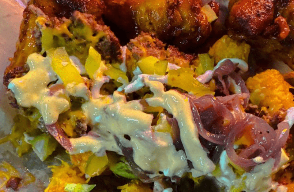 "I've tried over 50 smash burgers and I wouldn't call this a smash burger more like a gourmet thin patties. Burger was good. Ordered a double smash burger which came with cheddar cheese, tomato, lettuce, burger sauce, onions. Tater tots with cheese"